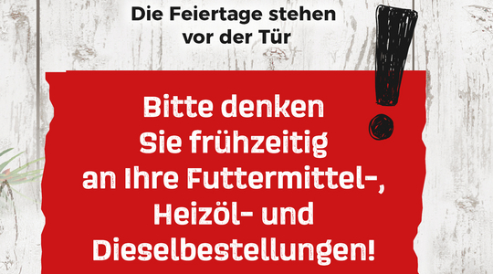 Bitte denken Sie frühzeitig an Ihre Futtermittel-, Heizöl- und Dieselbestellungen.