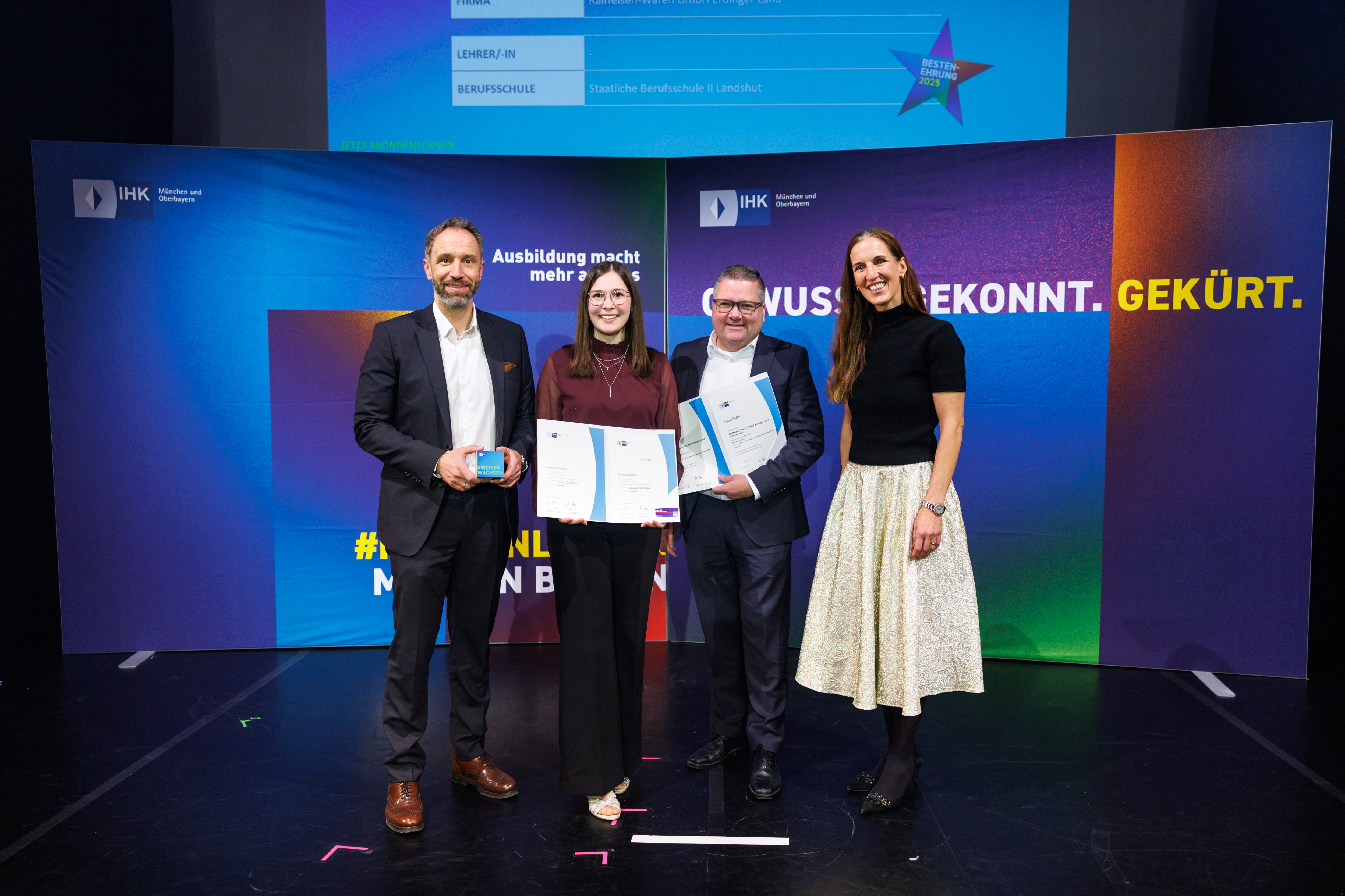 Am 20. November 2025 ehrte die IHK für München und Oberbayern die 106 besten oberbayerischen Auszubildenden der Abschlussprüfungen Winter 2024/2025 und Sommer 2025 im festlichen Rahmen des GOP Varieté-Theaters in München. Unter dem Motto „Gewusst. Gekonnt. Gekürt.“ feierten die Absolventinnen und Absolventen ihre herausragenden Leistungen.