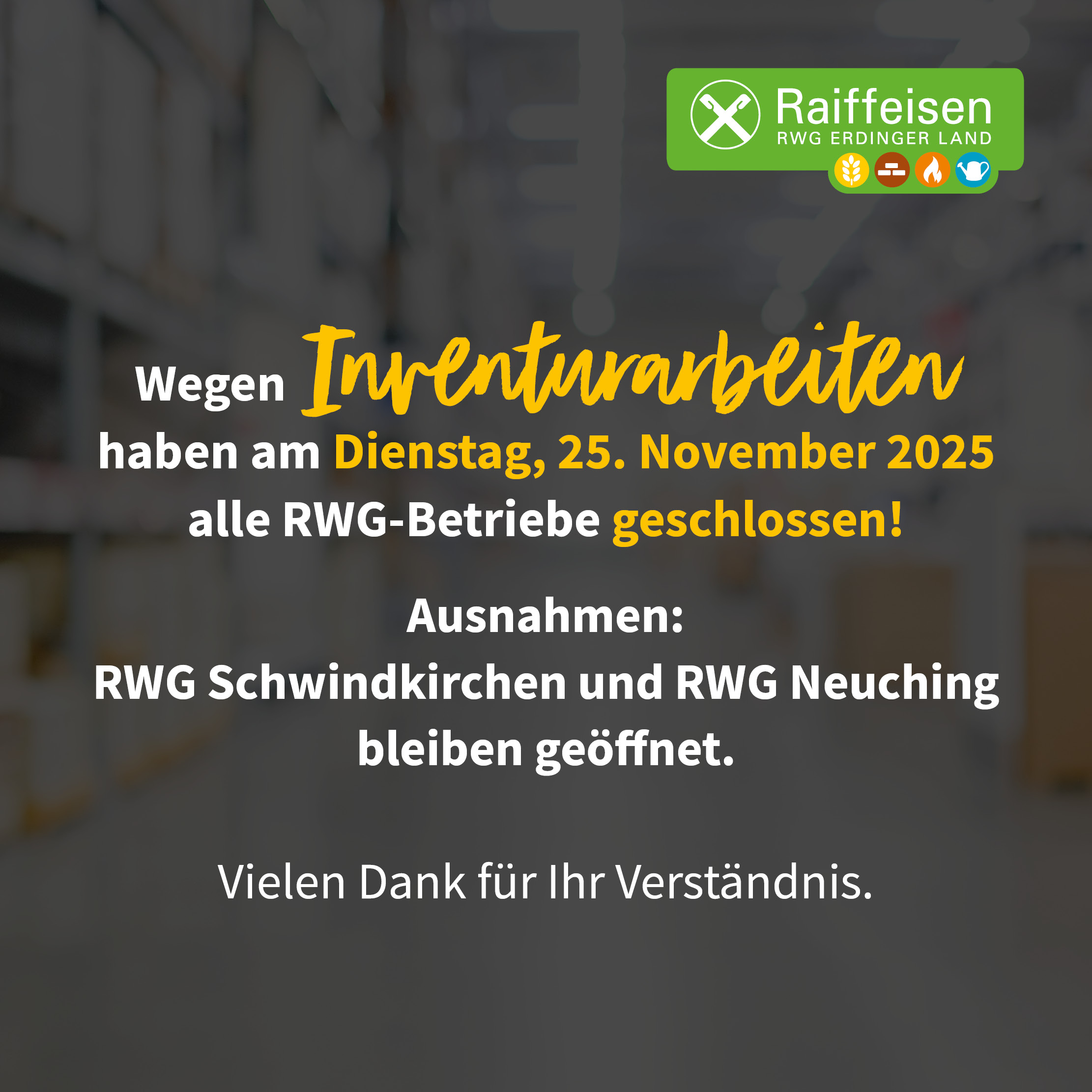 25. November 2025: RWG-Betriebe wegen Inventur geschlossen!