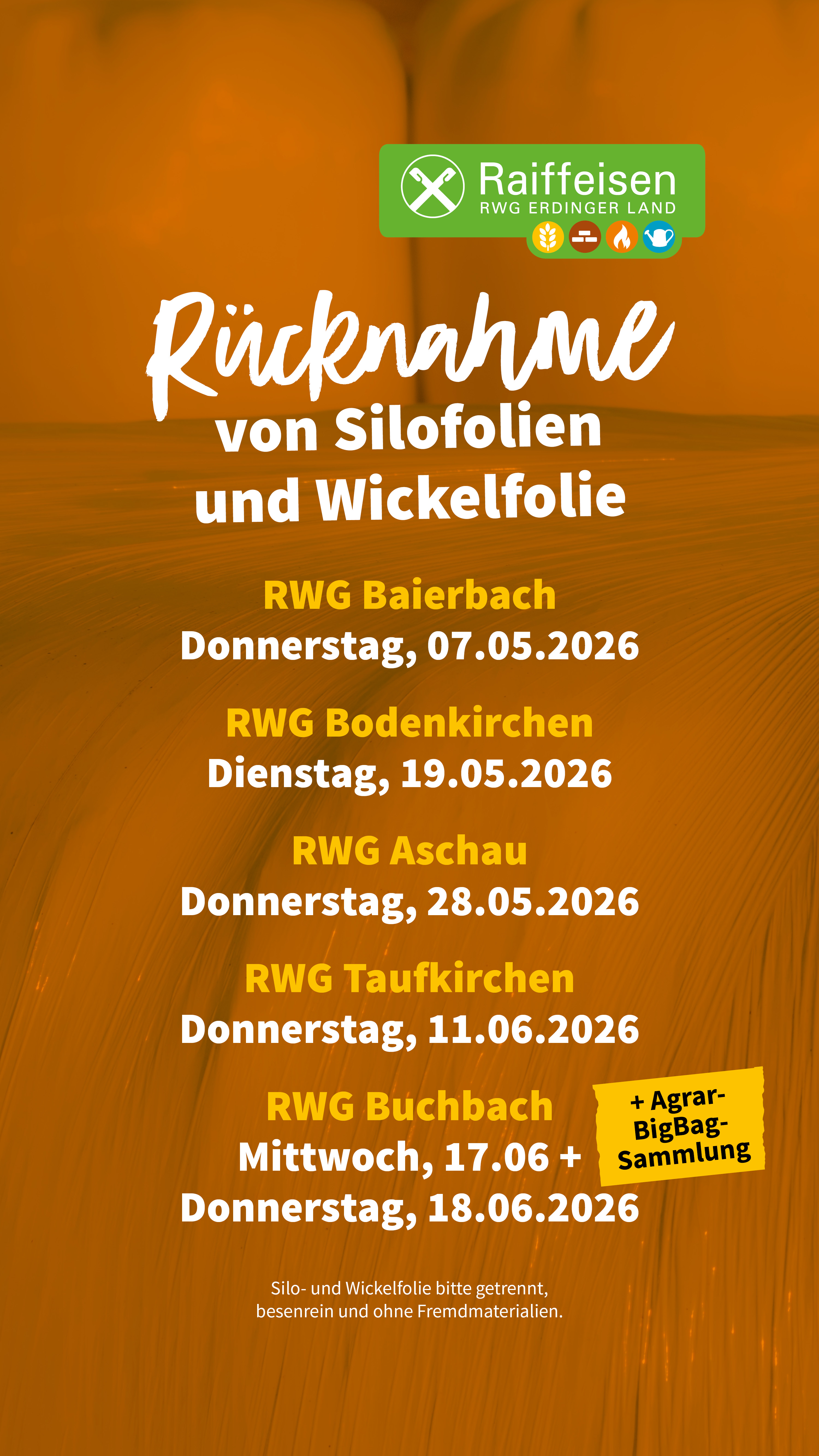 Unsere RWG Erdinger Land Standort - Sammeltermine: